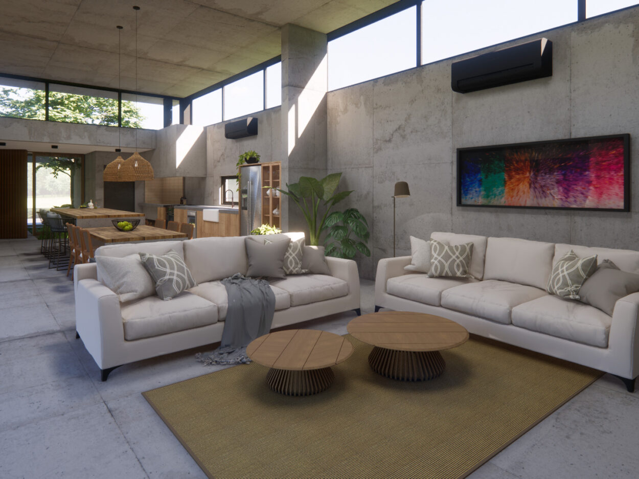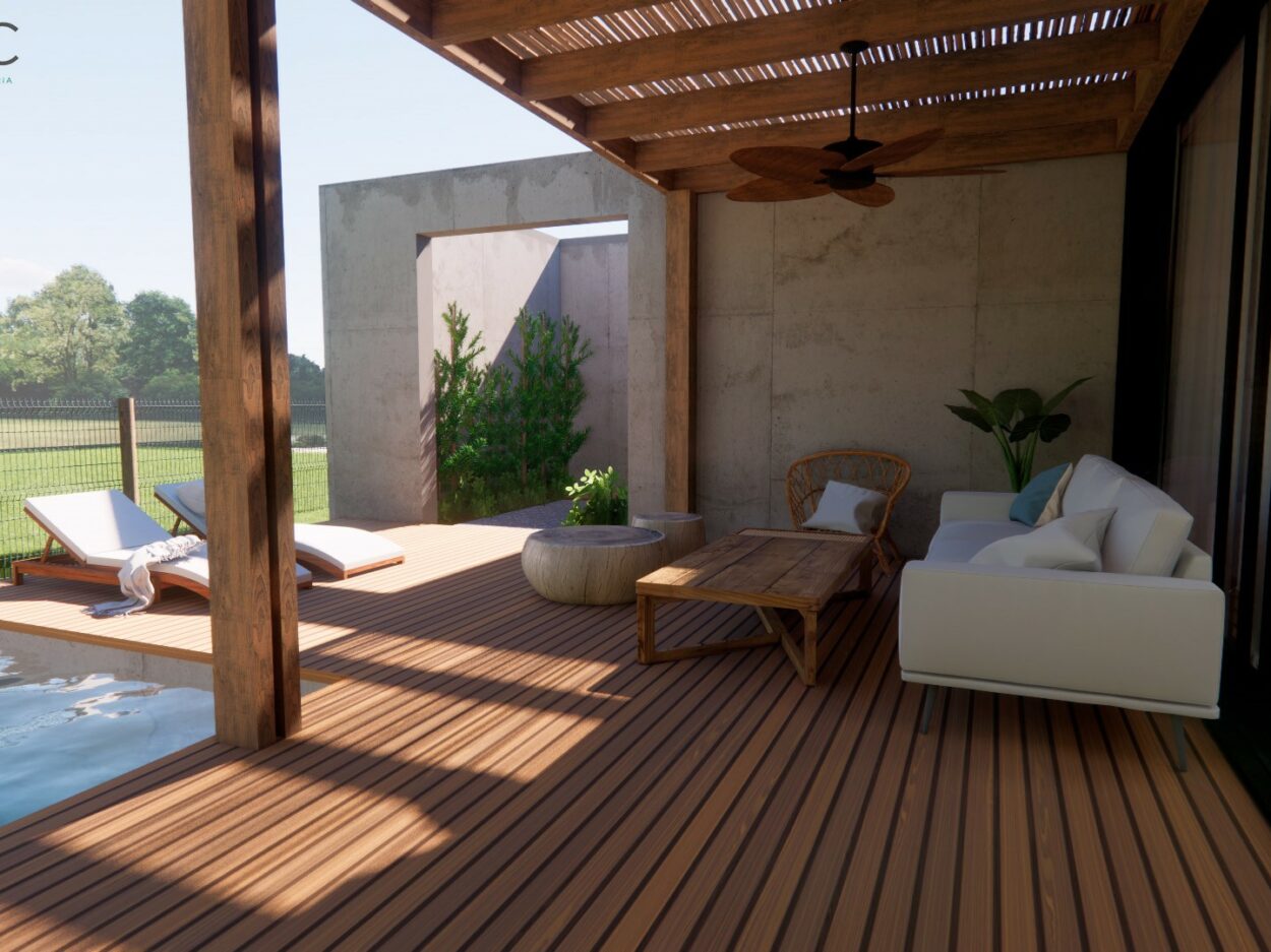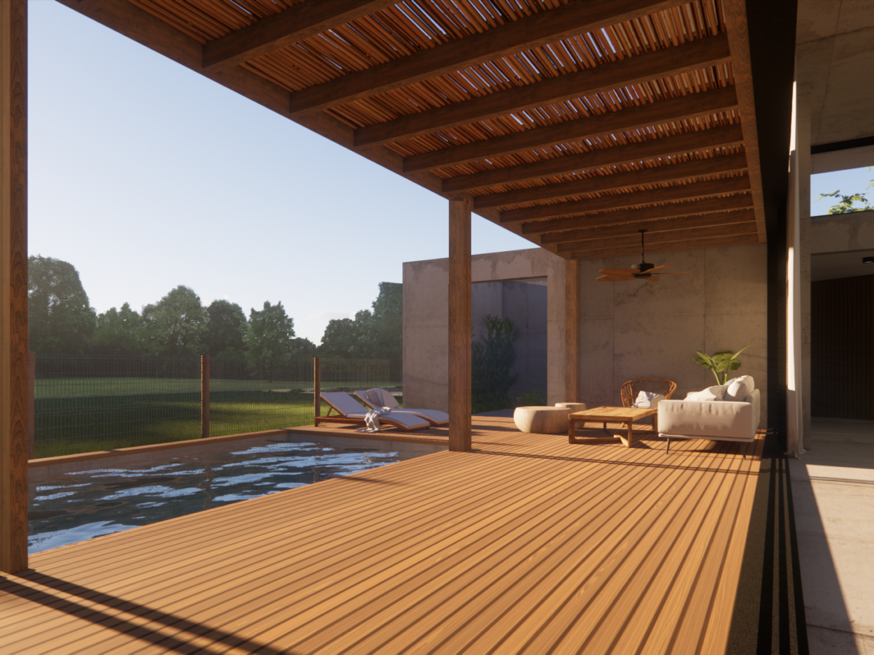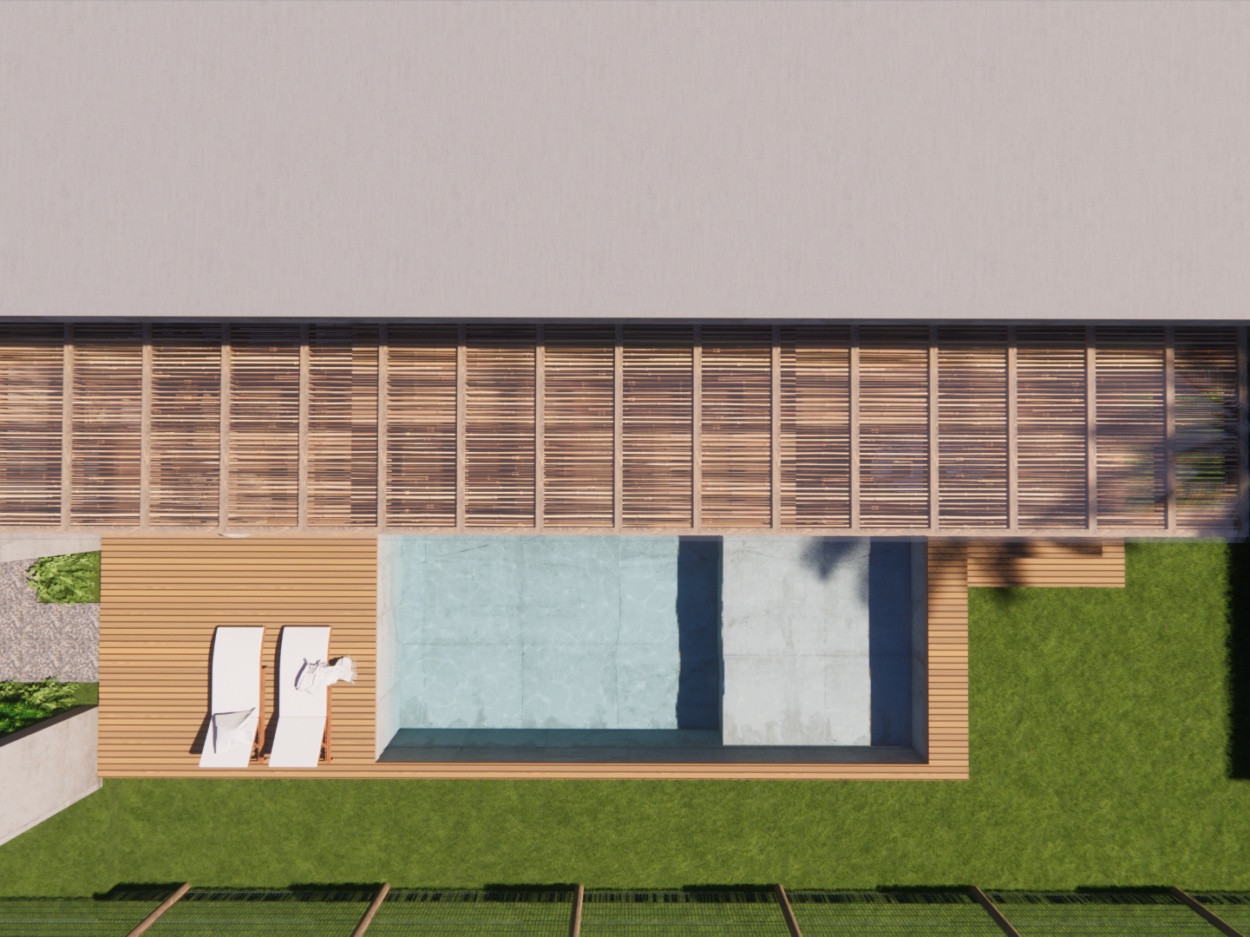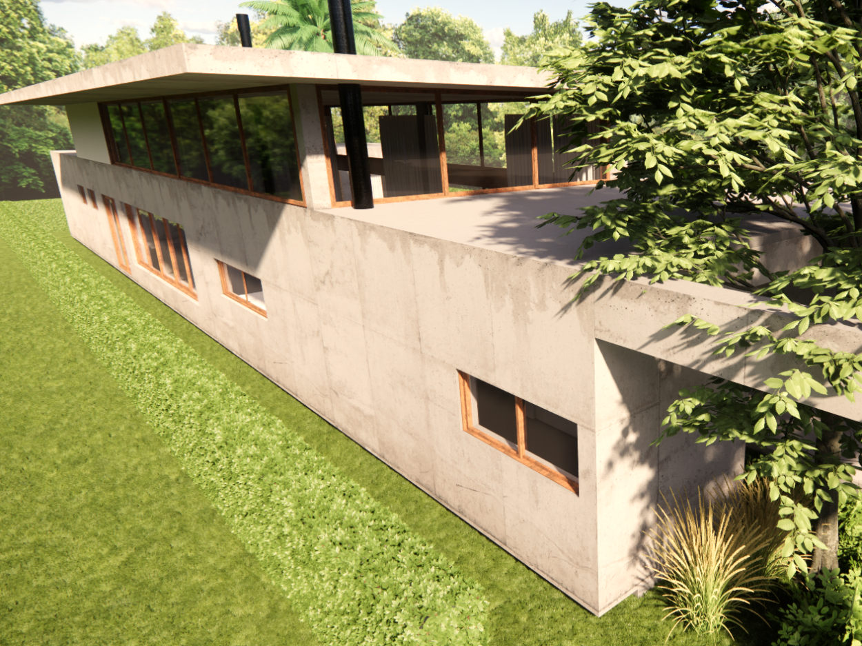 Projeto de uma residência térrea de alto padrão em uma área exclusiva da cidade. A casa, projetada inteiramente em concreto, é organizada em torno de um espaço externo central, o “coração da casa”. Esta área externa não só conecta os diferentes espaços internos, mas também proporciona uma atmosfera de relaxamento e convívio ao ar livre. Design moderno e elegante, aliado à durabilidade do concreto.