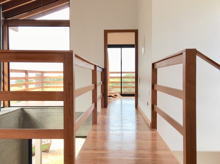 Seu design contemporâneo enfatiza linhas limpas, materiais naturais e uma paleta de cores neutras. Os espaços interiores são inundados de luz natural, criando uma atmosfera acolhedora e convidativa. As amplas aberturas conectam perfeitamente a casa à paisagem circundante, proporcionando uma sensação de unidade com a natureza.